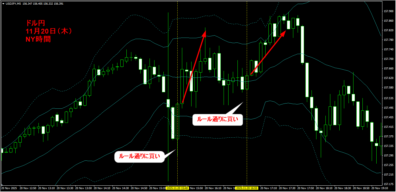 2回エントリーで約50pips獲得できた方もいるでしょう。