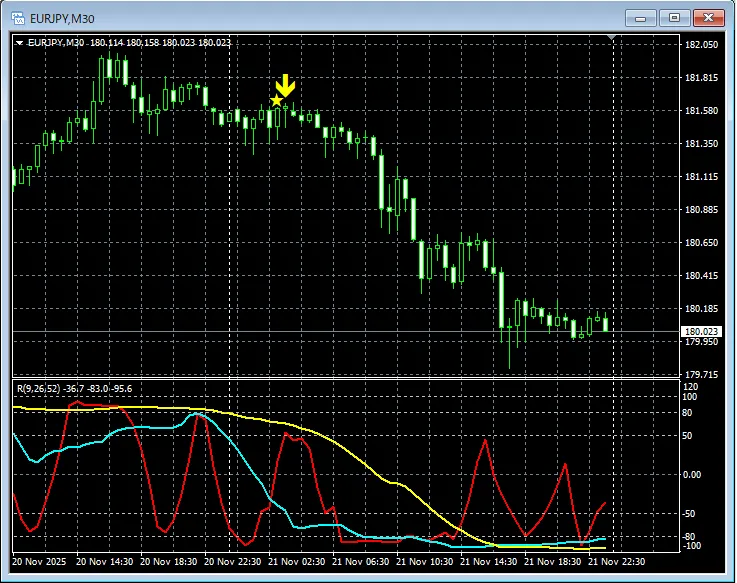 【RCIを極めてトレンド転換をとらえる!!】昨日のユーロ円 mBDSRのサインの例