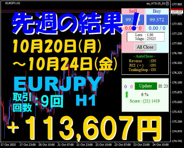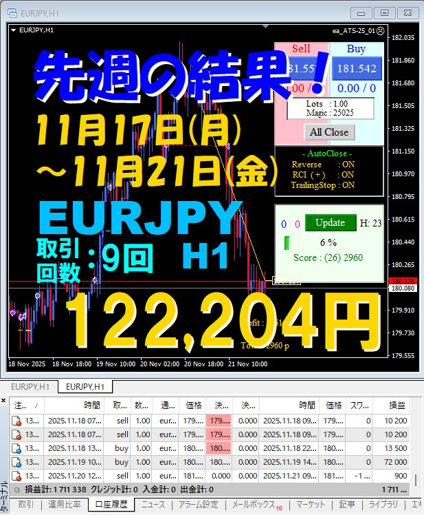 【先週の結果】EURJPY H1 『ATS-25』11月17日(月)~11月21日(金)