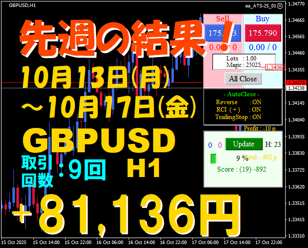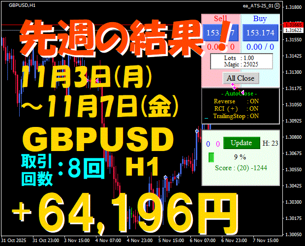 【先週の結果】GBPUSD H1 『ATS-25』11月17日(月)~11月21日(金)