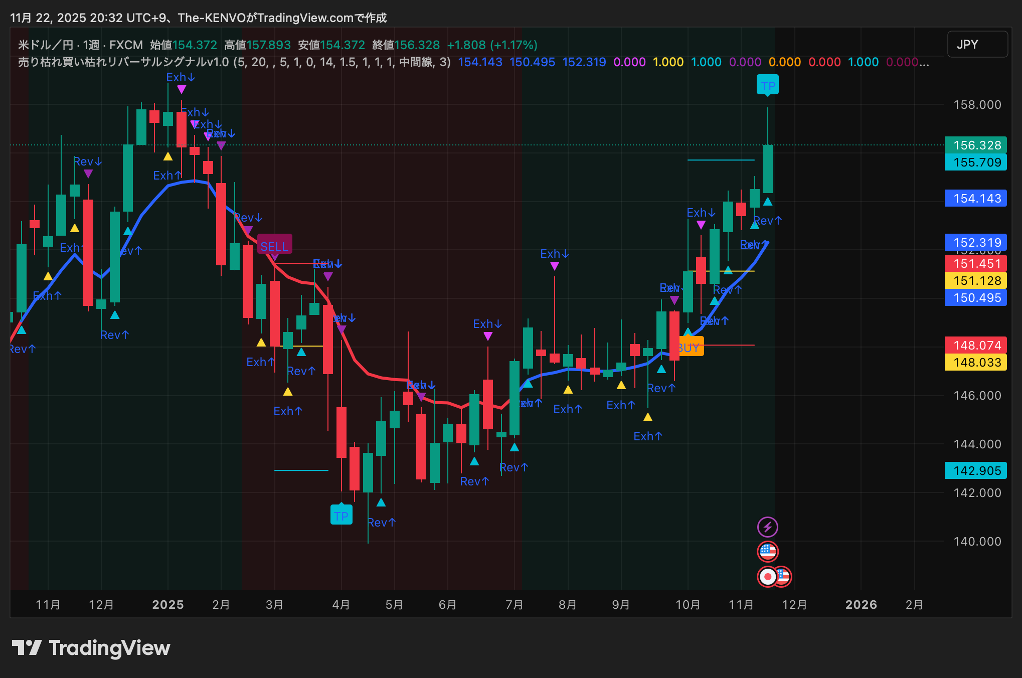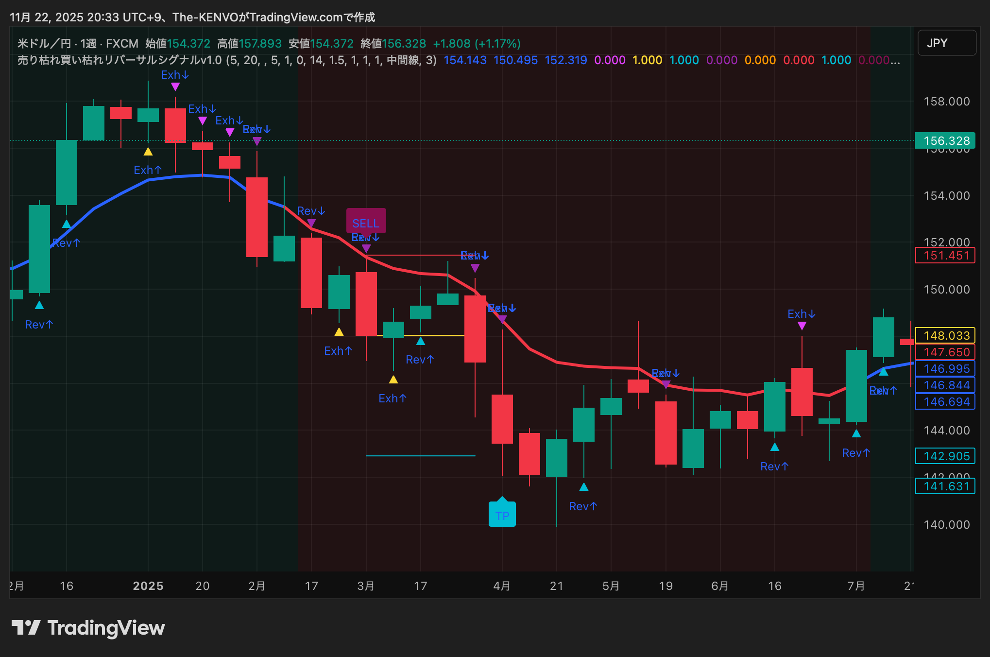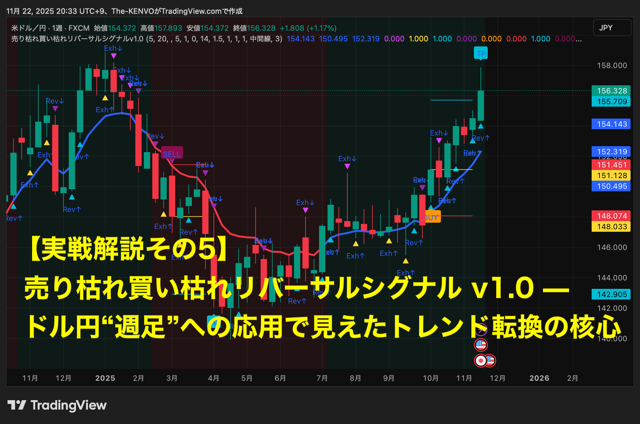 【実戦解説その5】 売り枯れ買い枯れリバーサルシグナル v1.0 — ドル円“週足”への応用で見えたトレンド転換の核心