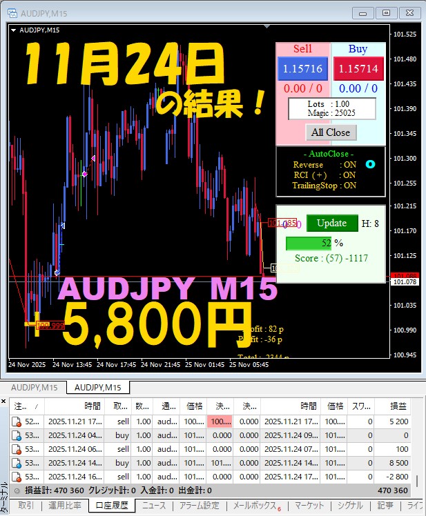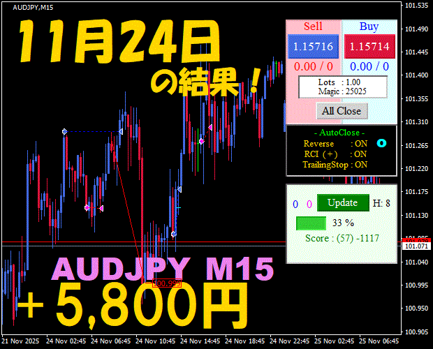 【AUDJPY M15】前日の結果『ATS-25』 11月24日