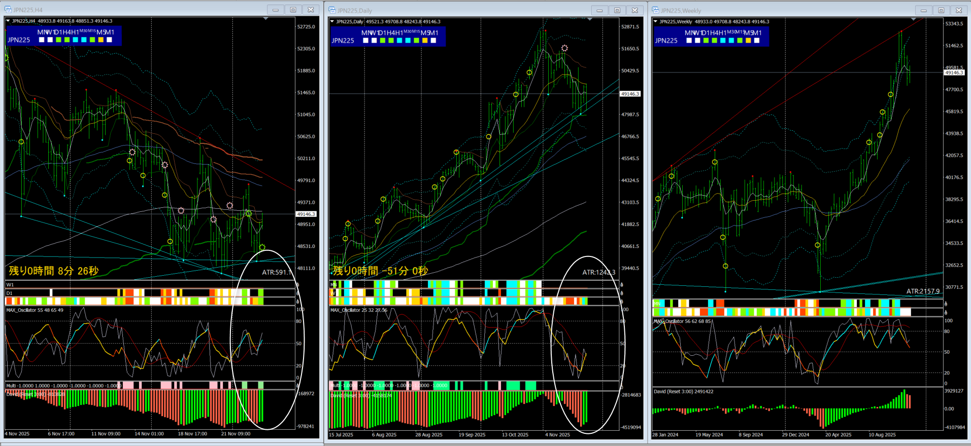 日足のMAXオシレーターの、位置が低く、多少は戻すかもしれないが
