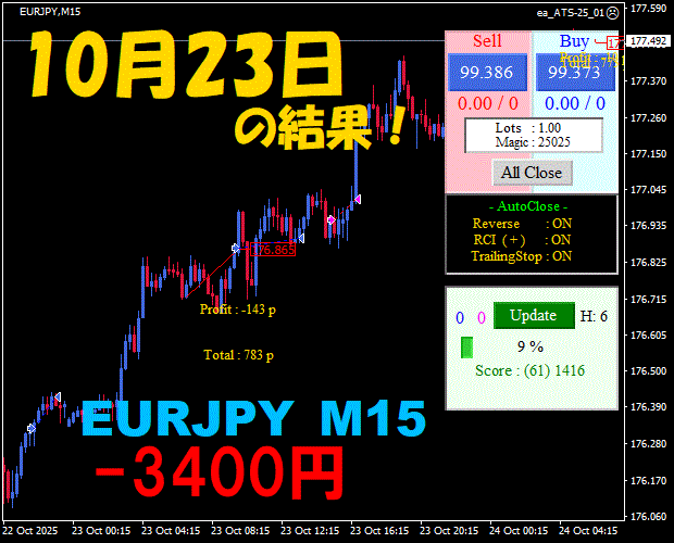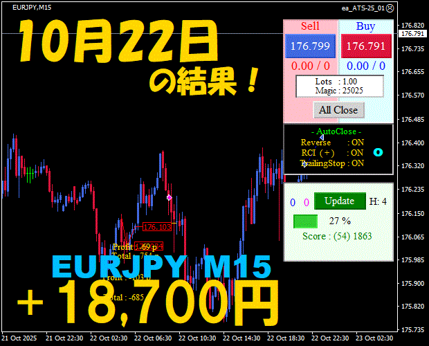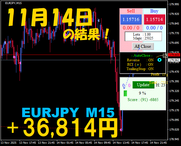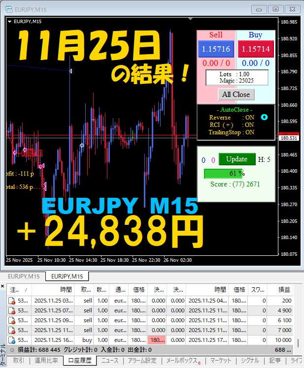 【EURJPY M15】前日の結果『ATS-25』 11月25日