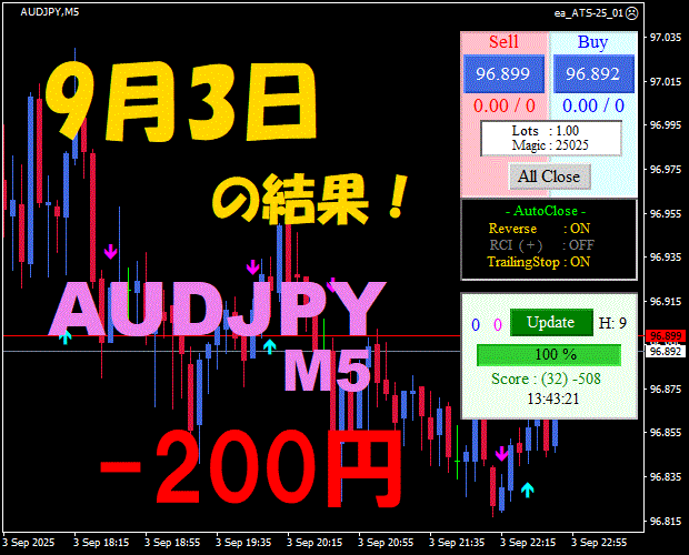 【前日の結果】AUDJPY H1 / M5 『ATS-25』11月26日