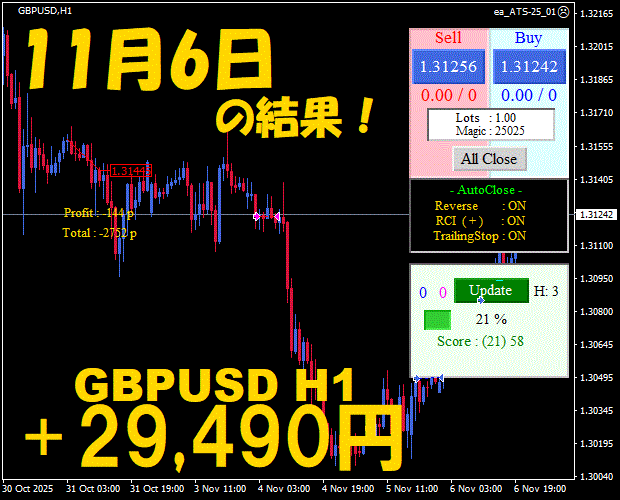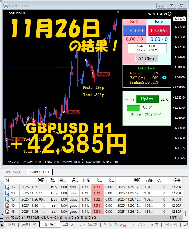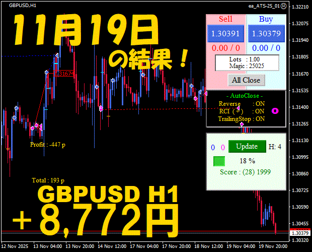 【前日の結果】GBPJPY H1 / M5 『ATS-25』11月26日