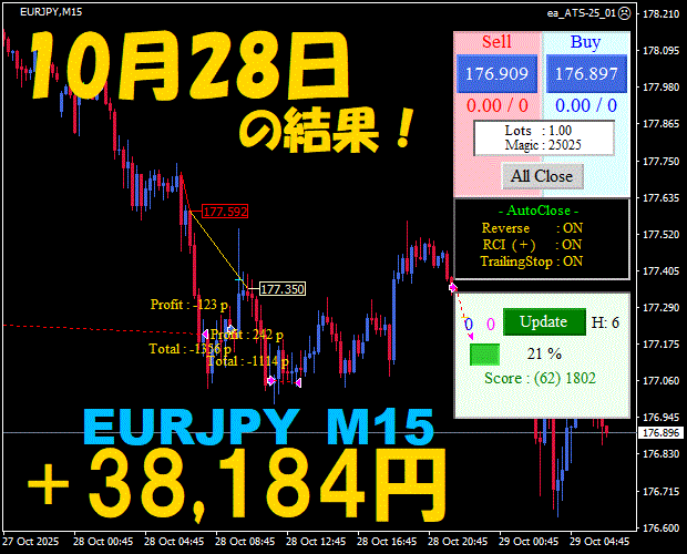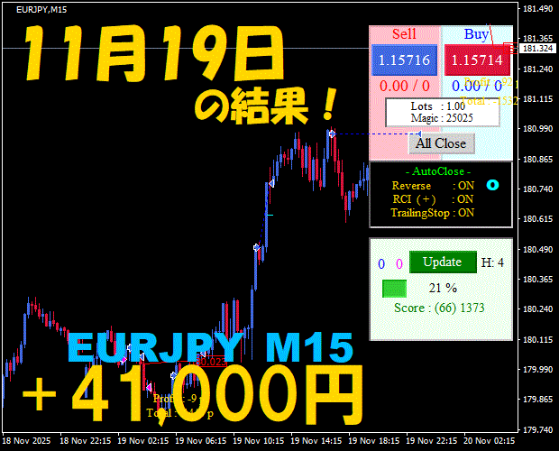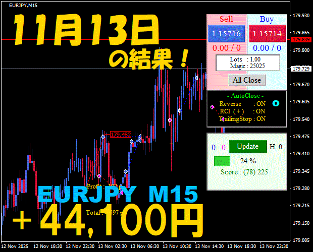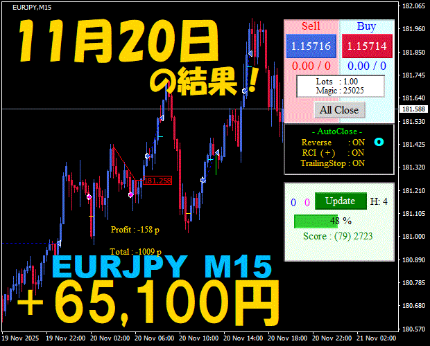 【EURJPY M15】前日の結果『ATS-25』 11月26日