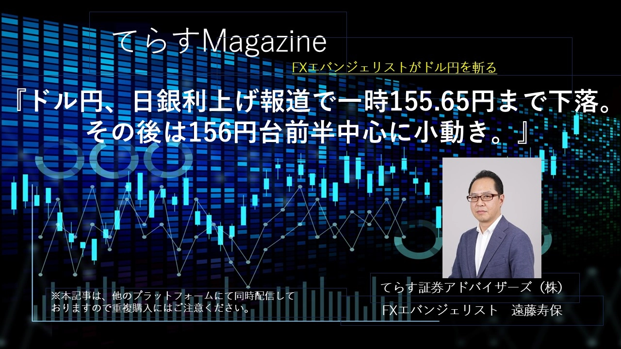 野口日銀審議委員のタカ派発言でドル円は一時155.72円まで下落。