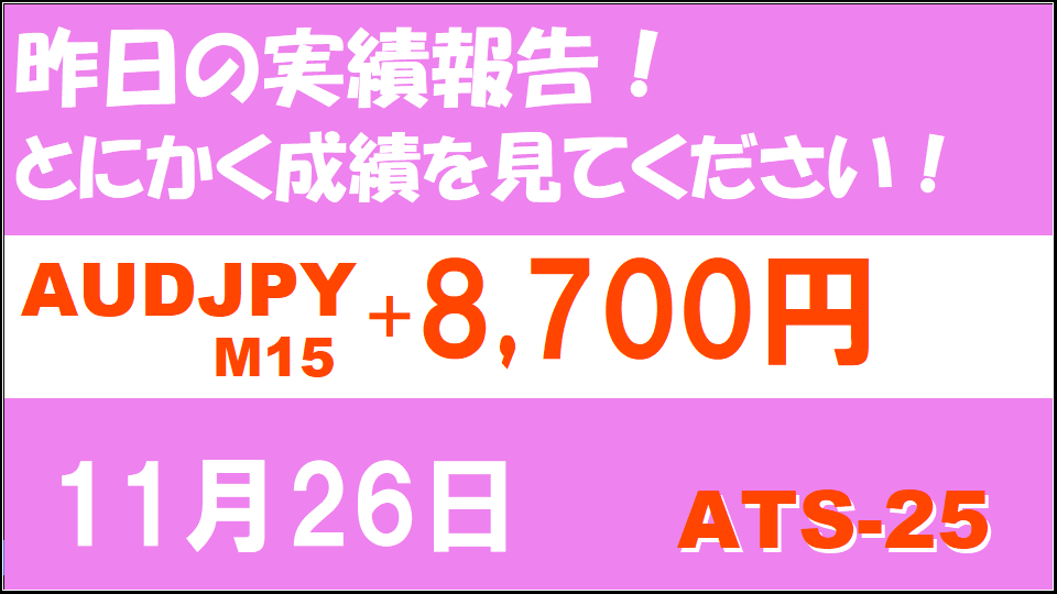【AUDJPY M15】前日の結果『ATS-25』 11月27日