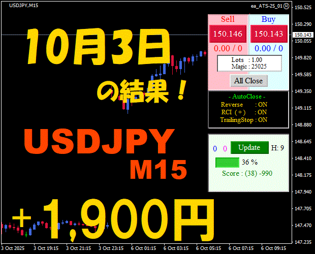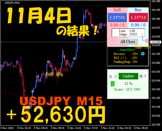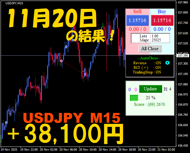 【USDJPY M15】前日の結果『ATS-25』 11月27日