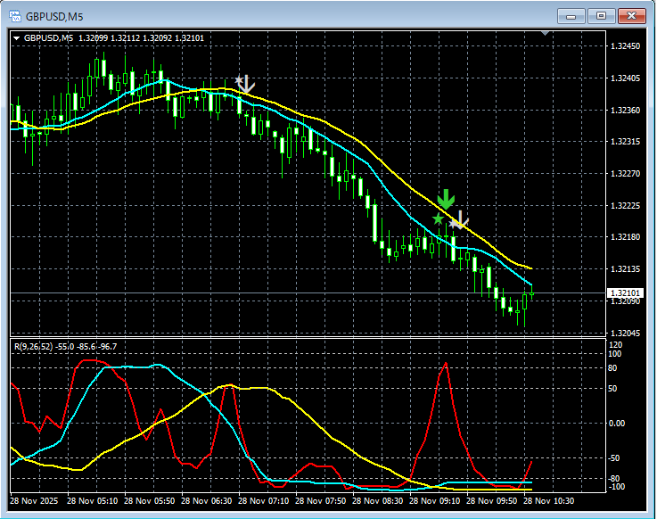 下記ではmBDSR(移動平均線フィルター)とR1R2S2のサインを同時に表示した例について紹介します。