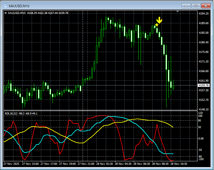 ゴールド XAUUSD mBDSRのサイン 昨日(2025/11/28)のチャートから