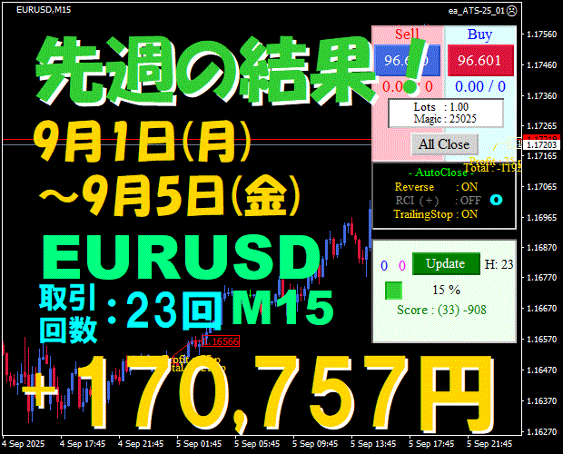 M15 週間報告!【EURUSD】ATS-25 ☆12月1日(月)~12月5日(金)