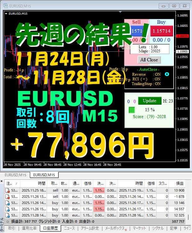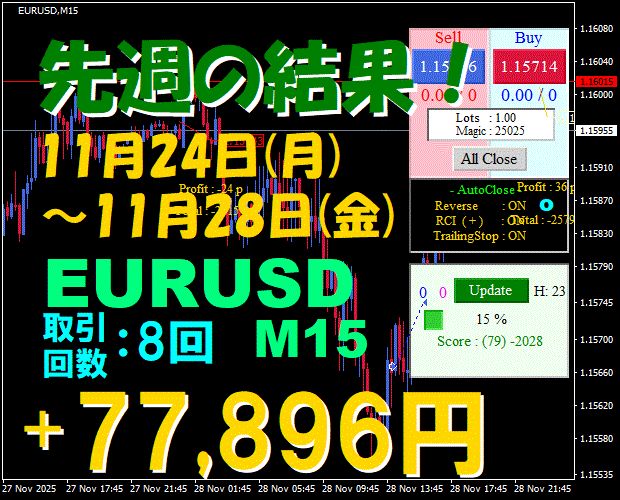 M15 週間報告!【EURUSD】ATS-25 ☆11月24日(月)~11月28日(金)