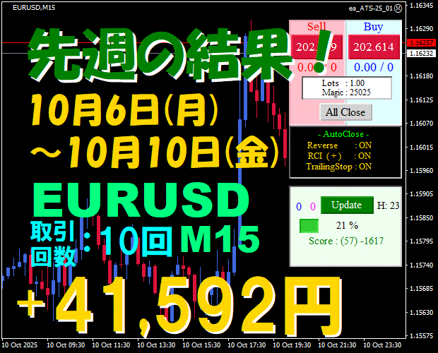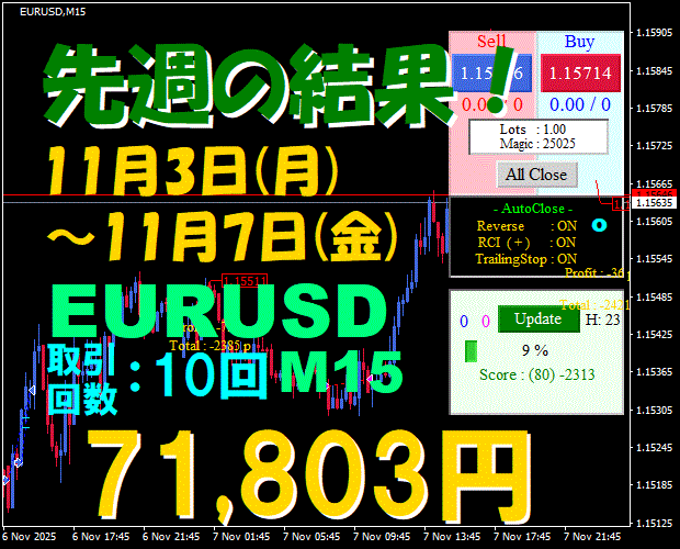 M15 週間報告!【EURUSD】ATS-25 ☆11月10日(月)~11月14日(金)