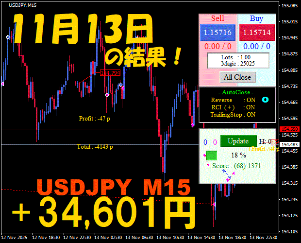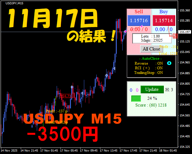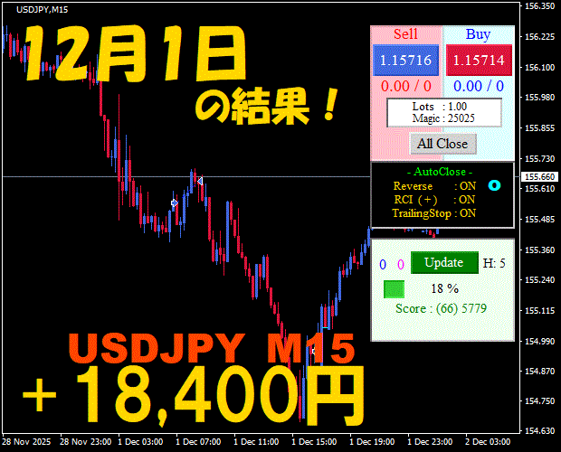 【USDJPY M15】前日の結果『ATS-25』 12月1日