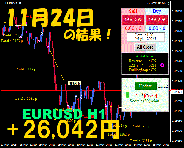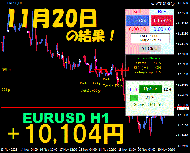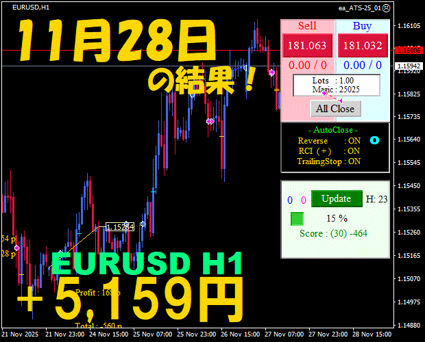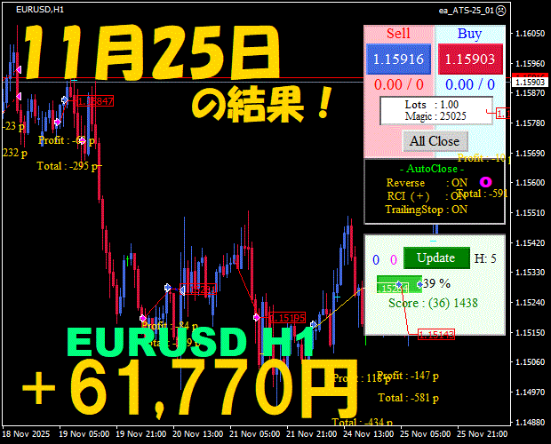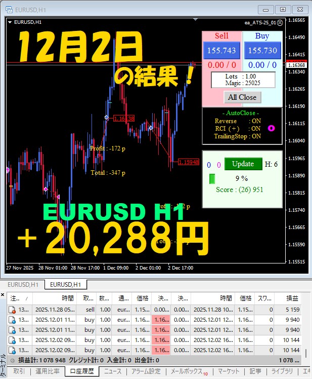 【前日の結果】EURUSD H1 / M5 『ATS-25』12月2日