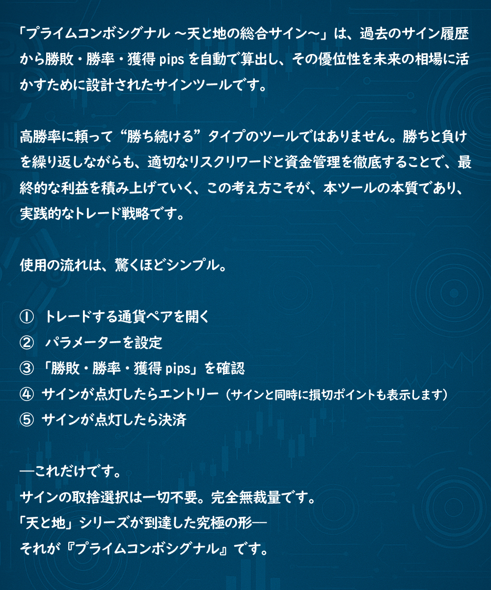 以上がプライムコンボシグナル ~天と地の総合サイン~の全貌です。