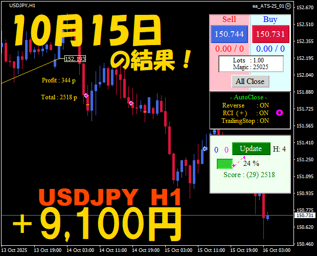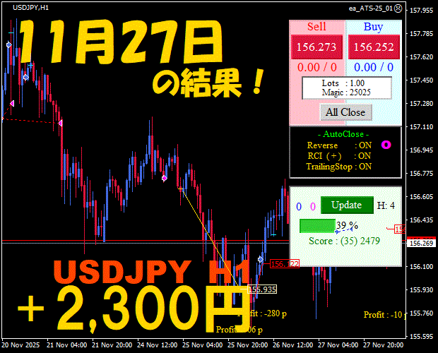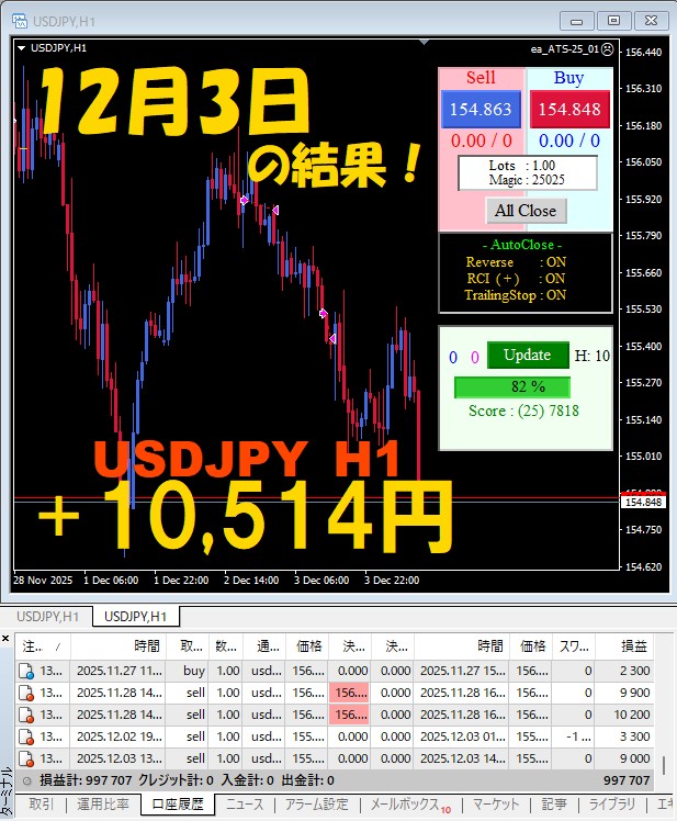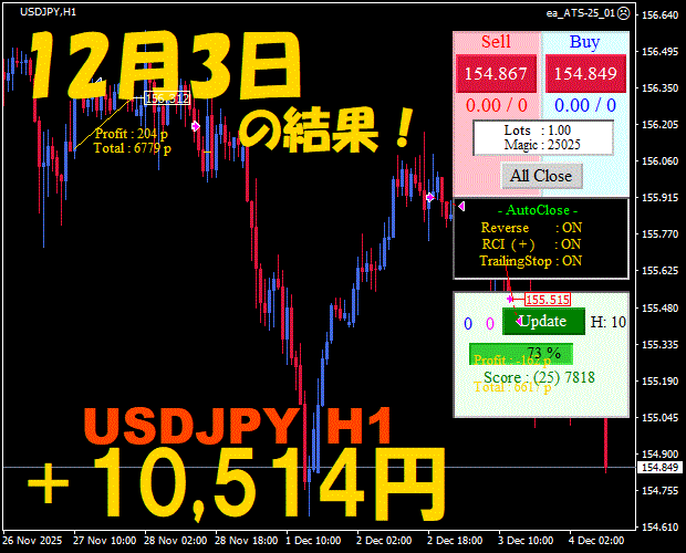 【前日の結果】USDJPY H1 / M5 『ATS-25』12月3日