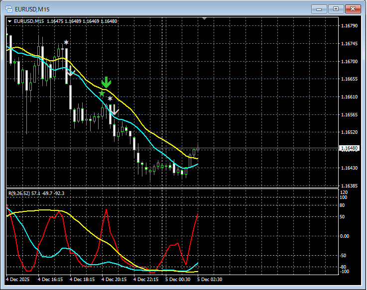 下記ではmBDSR(移動平均線フィルター)とR1R2S2のサインを同時に表示した例について紹介します。