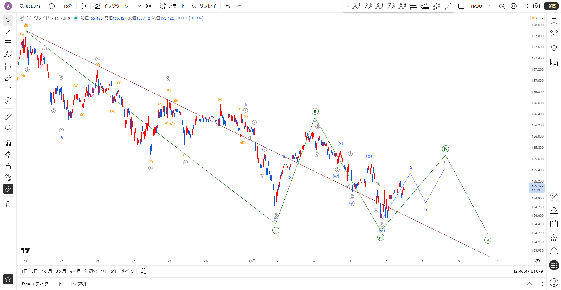 【ドル円】複雑化しても大丈夫 / 12月5日(金)エリオット波動分析