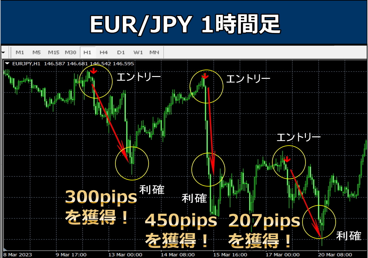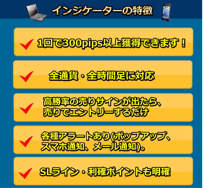 高勝率の売りシグナル。スマホ通知でエントリーするだけで使えます。1回で300pips以上獲得できます!