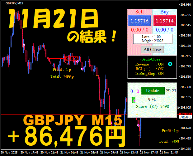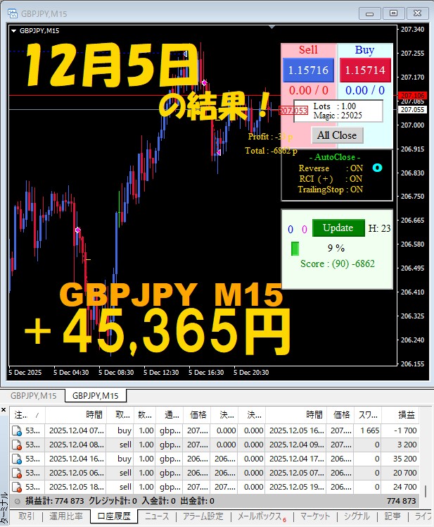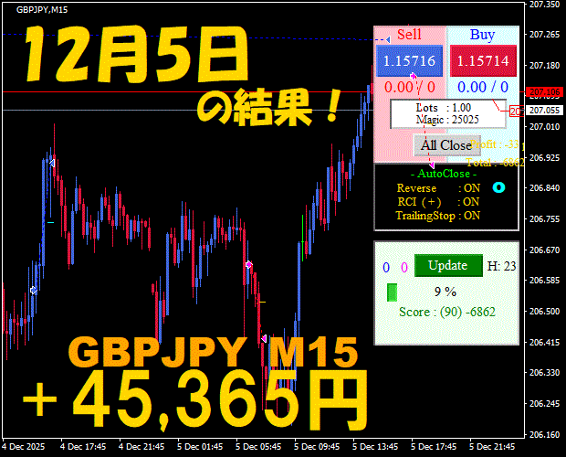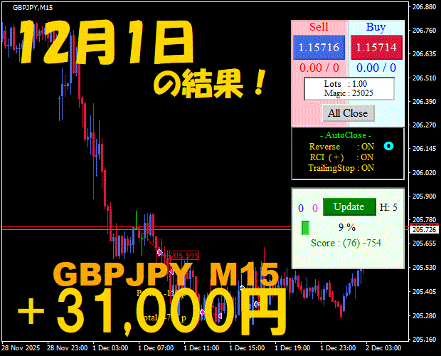 【GBPJPY M15】前日の結果『ATS-25』 12月5日