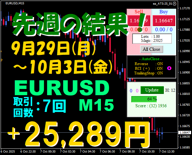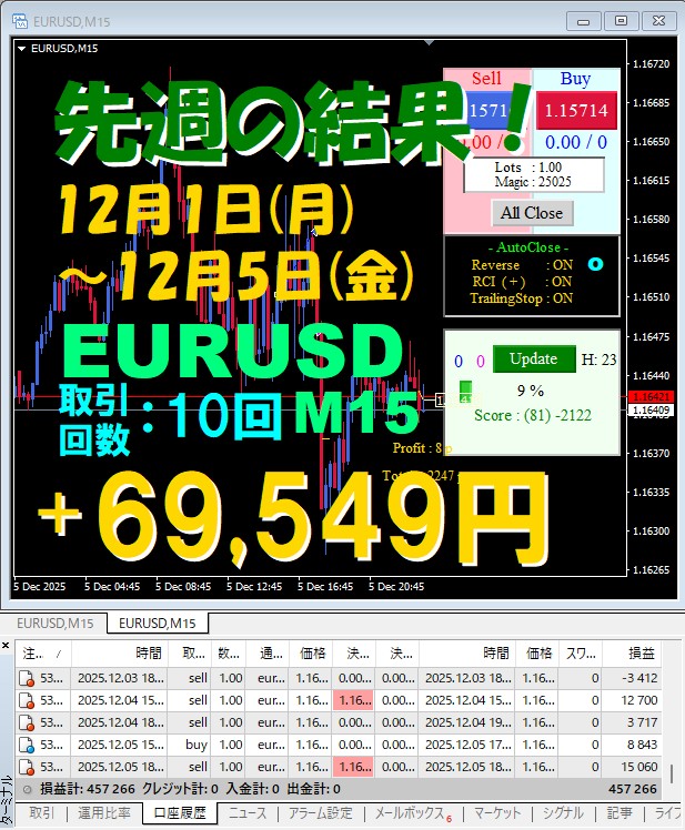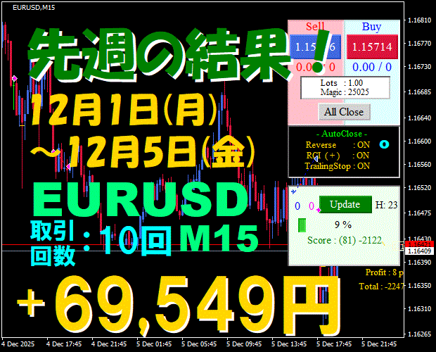 M15 週間報告!【EURUSD】ATS-25 ☆12月1日(月)~12月5日(金)