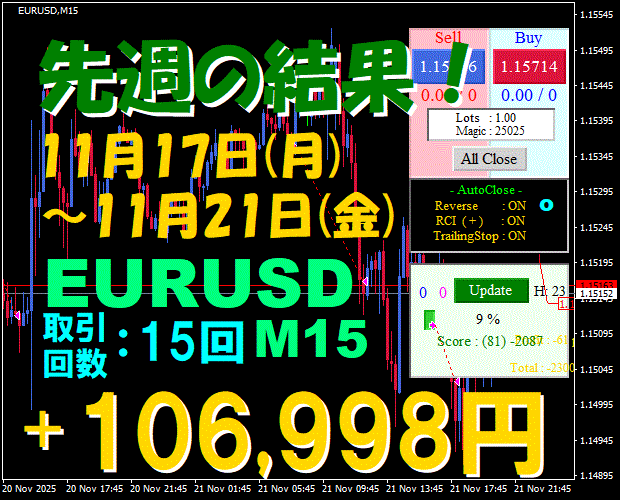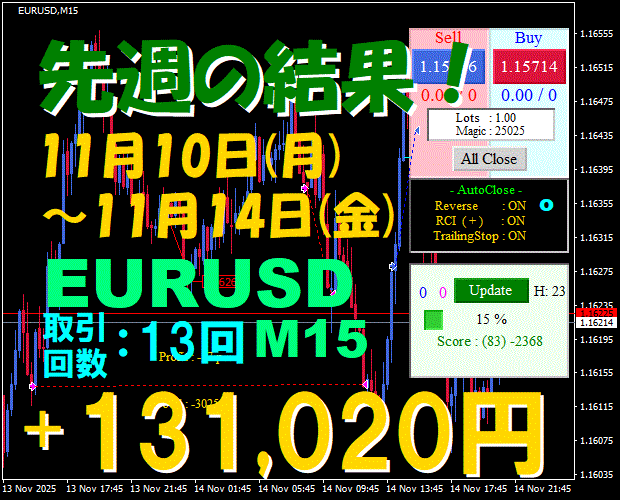 M15 週間報告!【EURUSD】ATS-25 ☆11月10日(月)~11月14日(金)