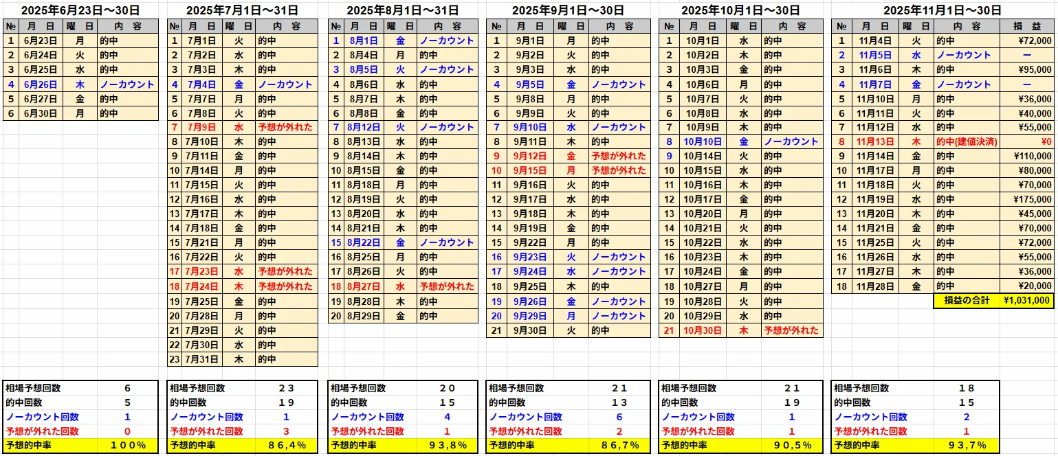 【11月の利益は、約103万円】相場予想の的中率91,4%でした!2025年6月23日~11月30日までのトレード予想した全データを大公開!【波動マスターFX】