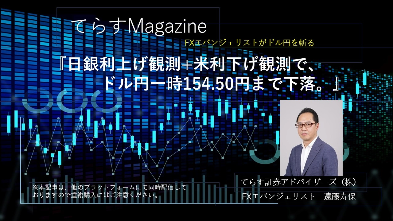 日銀利上げ継続姿勢との観測報道受け、ドル円は一時154.34円まで下落。