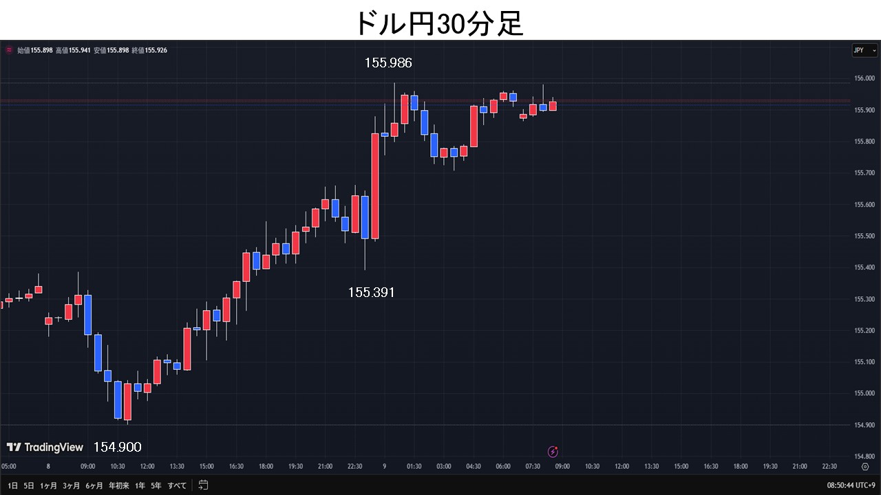 米10年債利回り上昇を手掛かりに、ドル円は155.98円まで上昇。