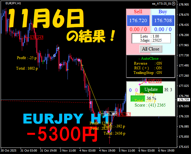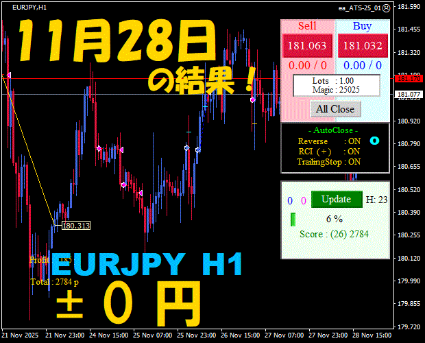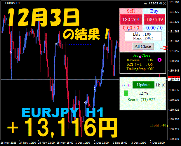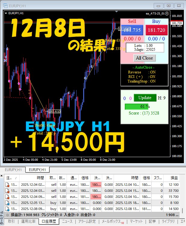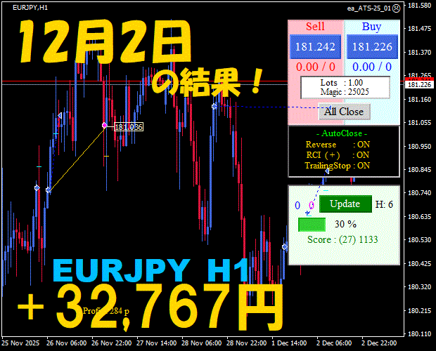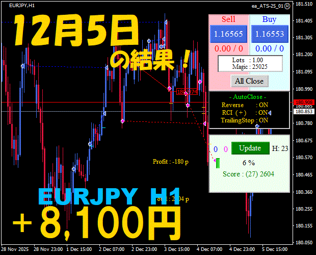 【前日の結果】EURJPY H1 / M5 『ATS-25』12月8日