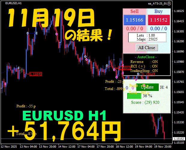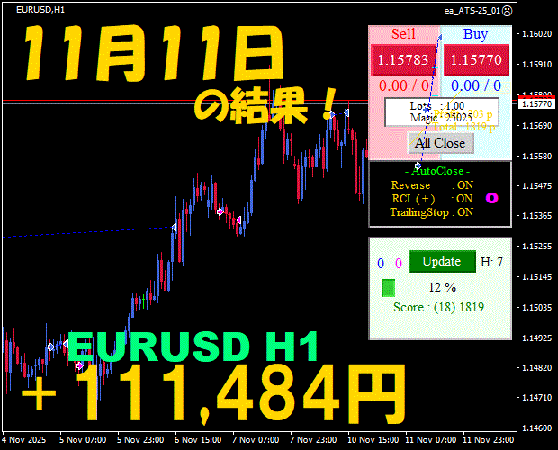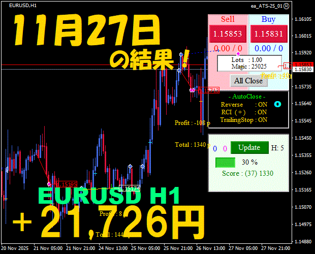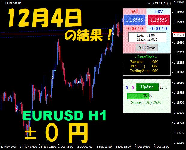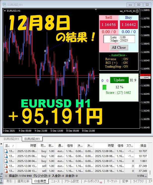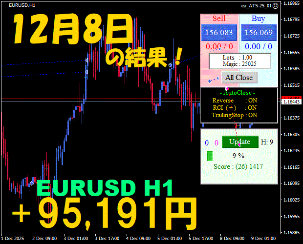 【前日の結果】EURUSD H1 / M5 『ATS-25』12月8日