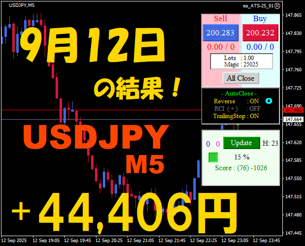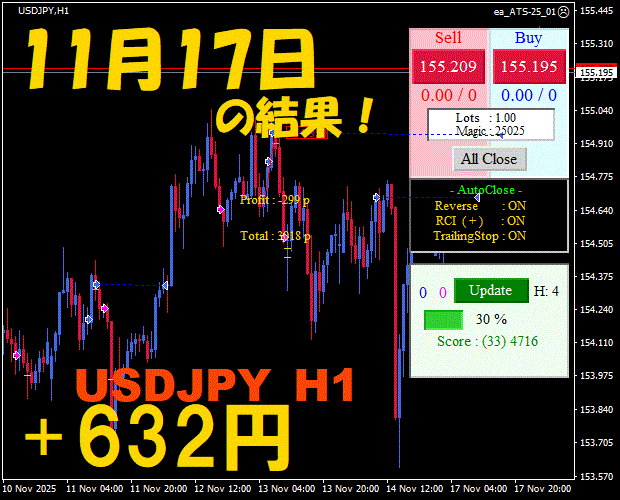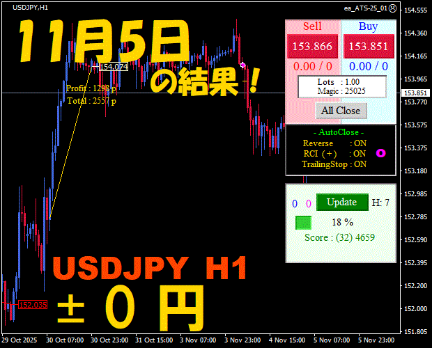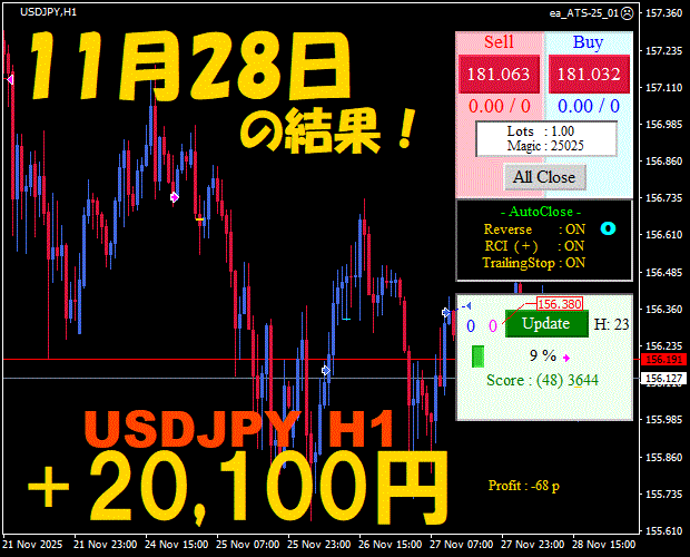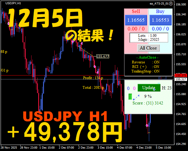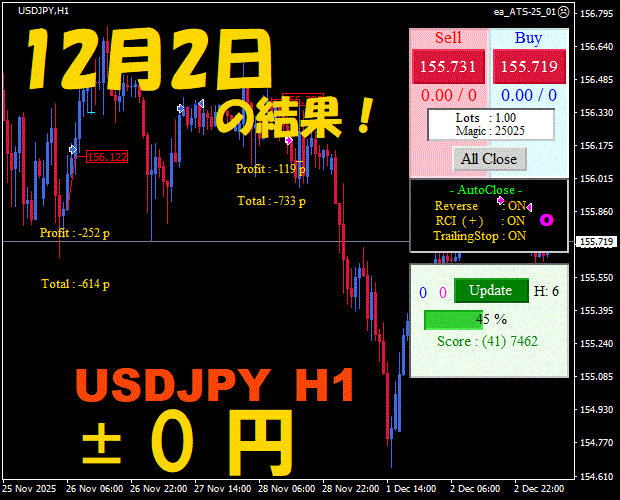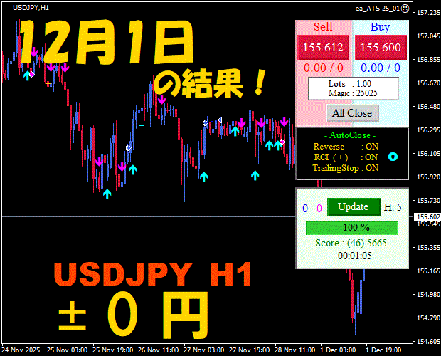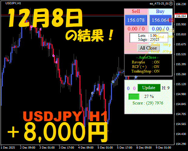 【前日の結果】USDJPY H1 / M5 『ATS-25』12月8日