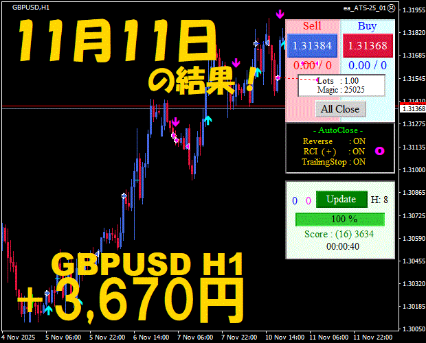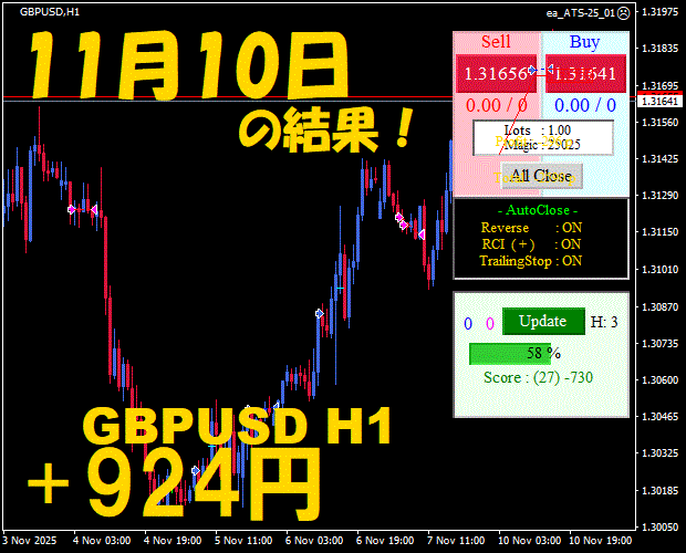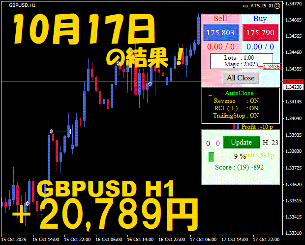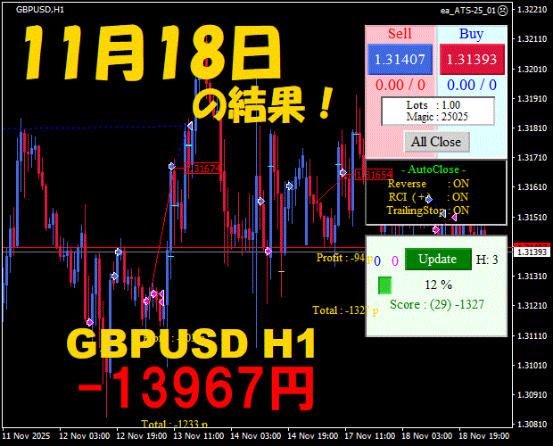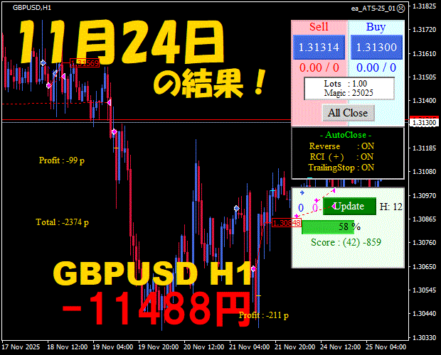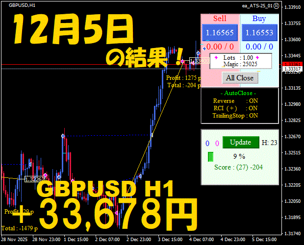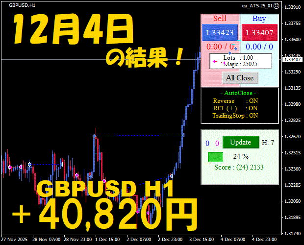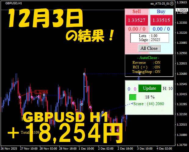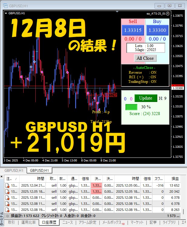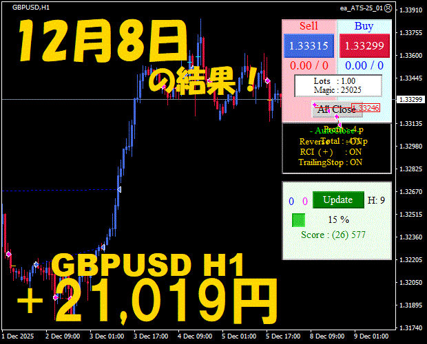 【前日の結果】GBPJPY H1 / M5 『ATS-25』12月8日