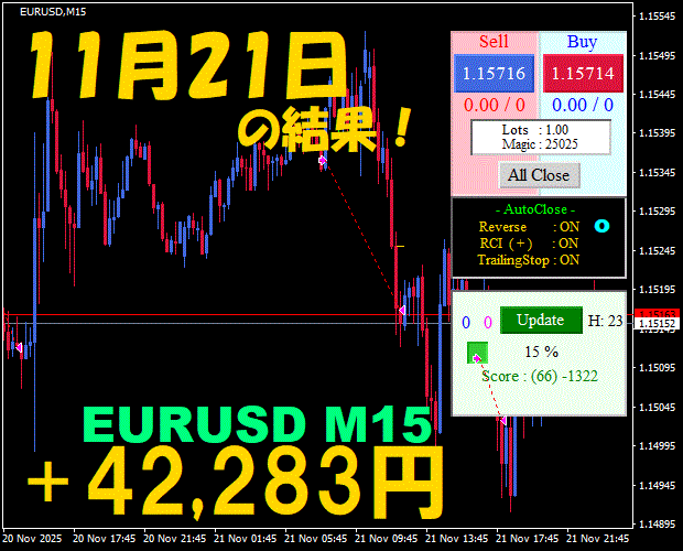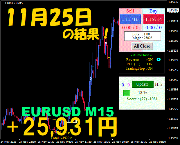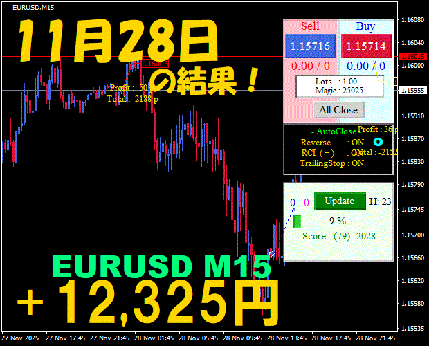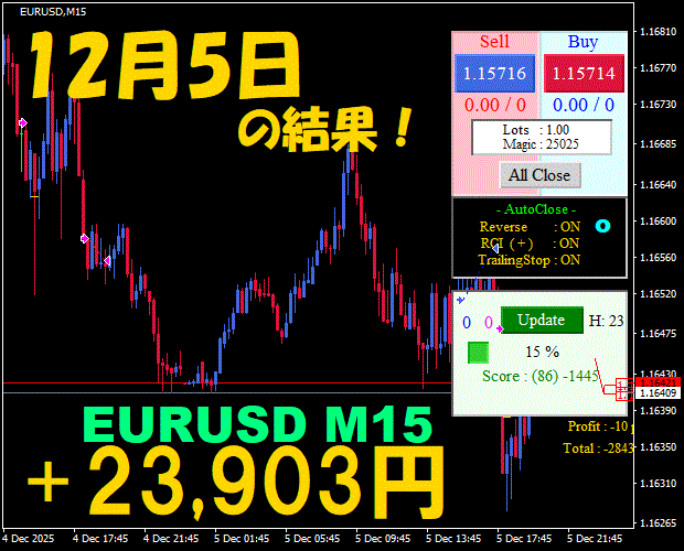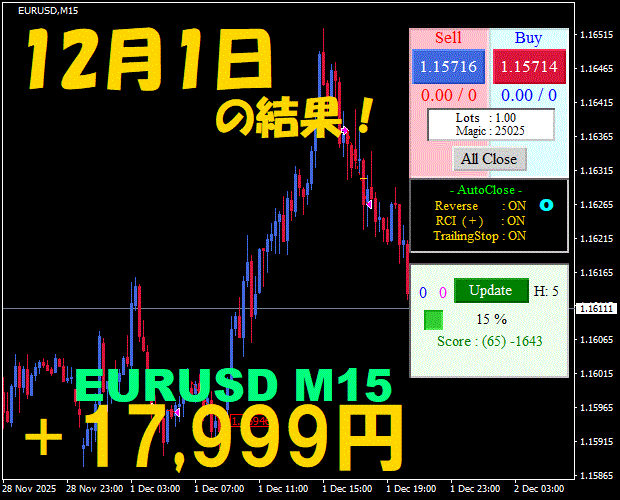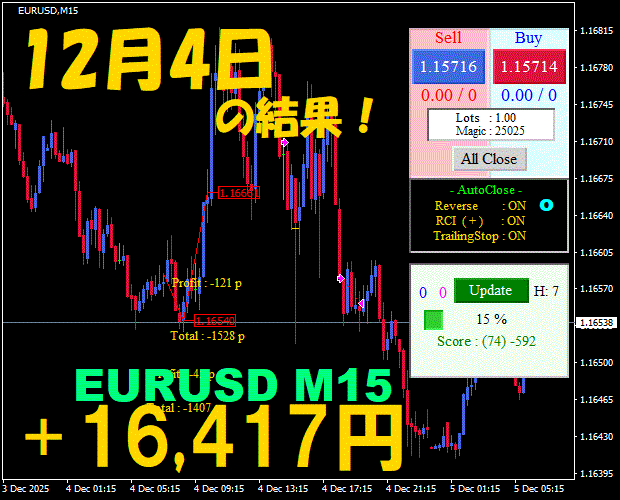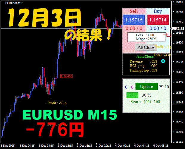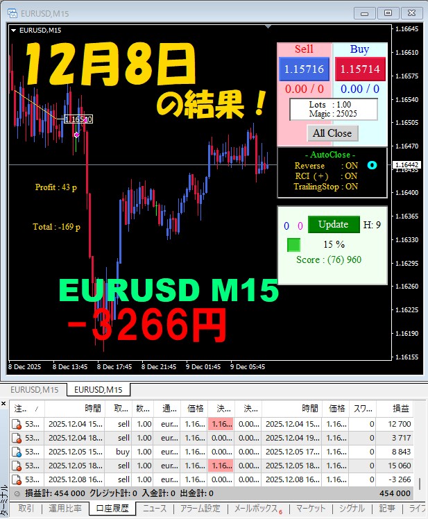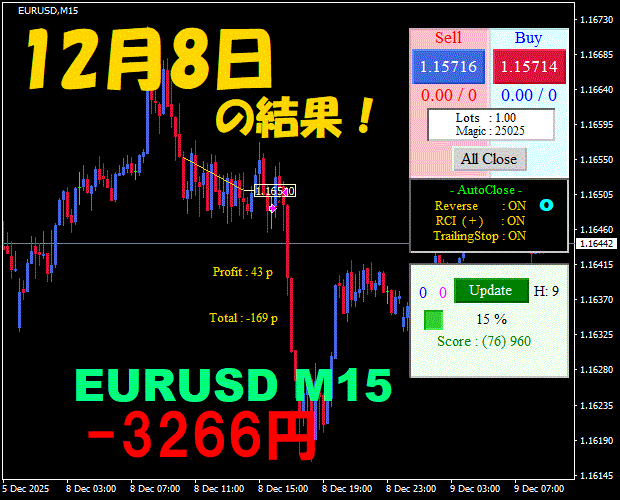【EURUSD M15】前日の結果『ATS-25』 12月8日