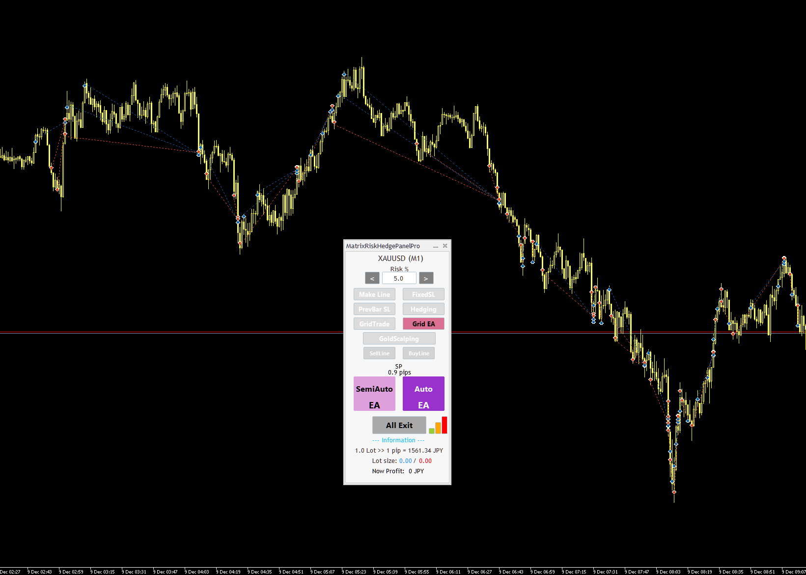 Grid EAは、相場がどちらに動いても利益を狙える『グリッドトレード方式』を採用しています。上にも下にも注文を並べて、相場の往復する動きで利益を積み重ねていくんですね🎯