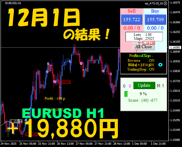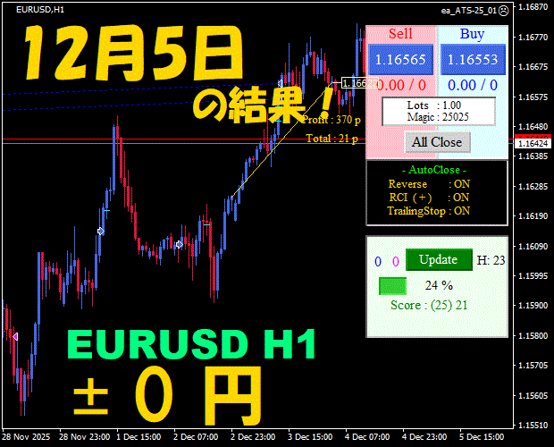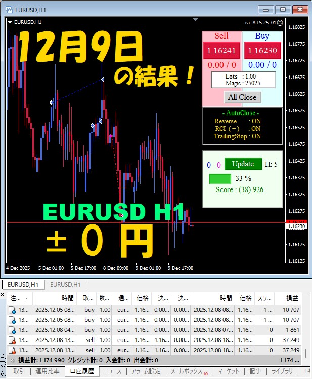 【前日の結果】EURUSD H1 / M5 『ATS-25』12月9日