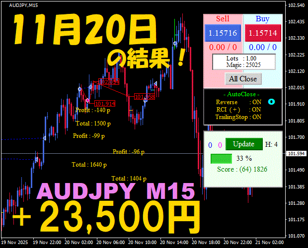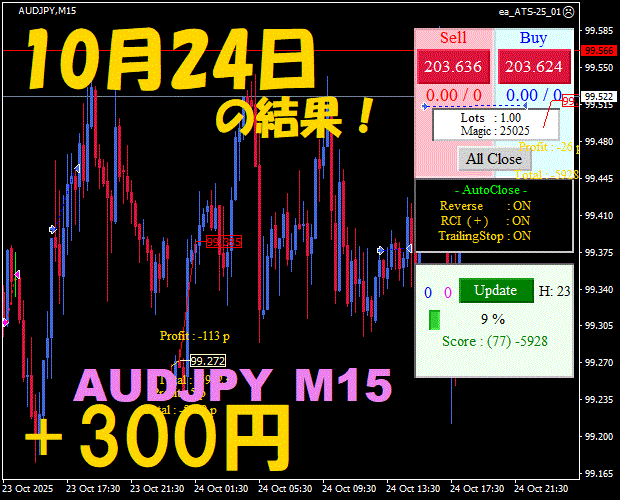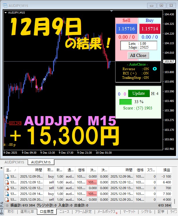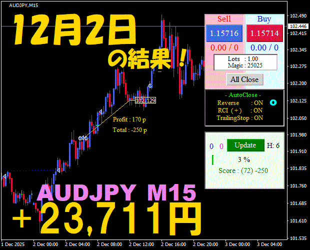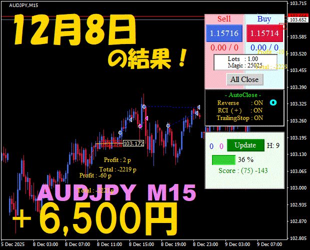 【AUDJPY M15】前日の結果『ATS-25』 12月9日
