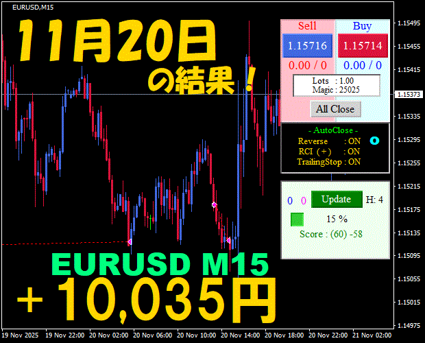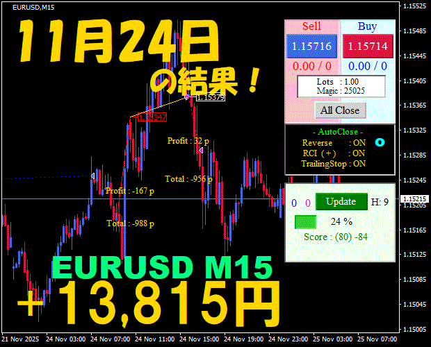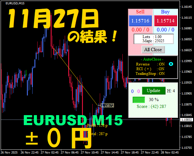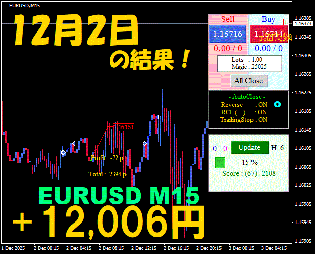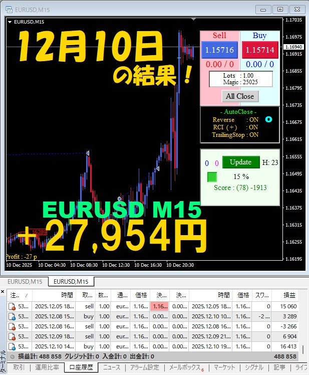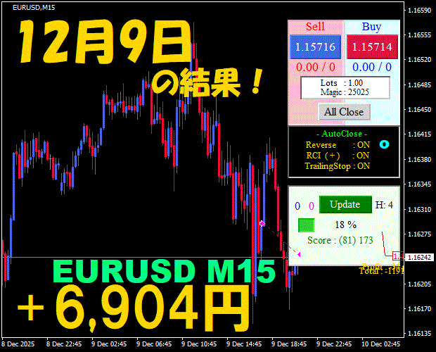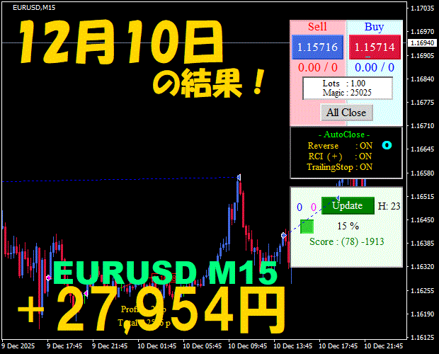【EURUSD M15】前日の結果『ATS-25』 12月10日