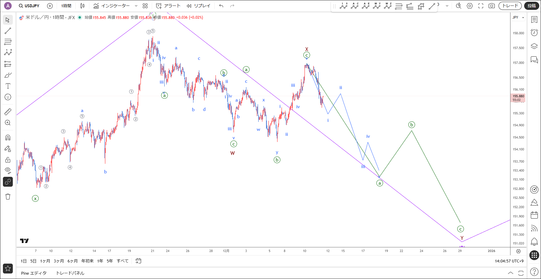 【ドル円】下降のターン / 12月11日(木)エリオット波動分析