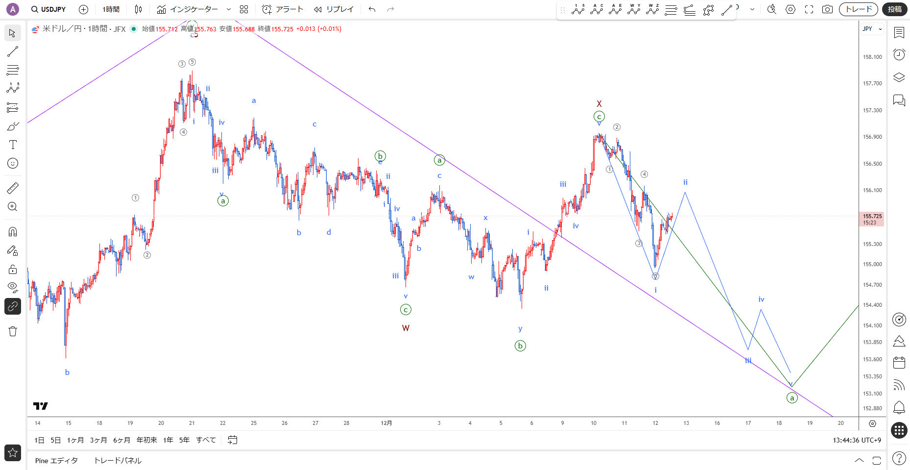 【ドル円】狙い通りの動き / 12月12日(金)エリオット波動分析
