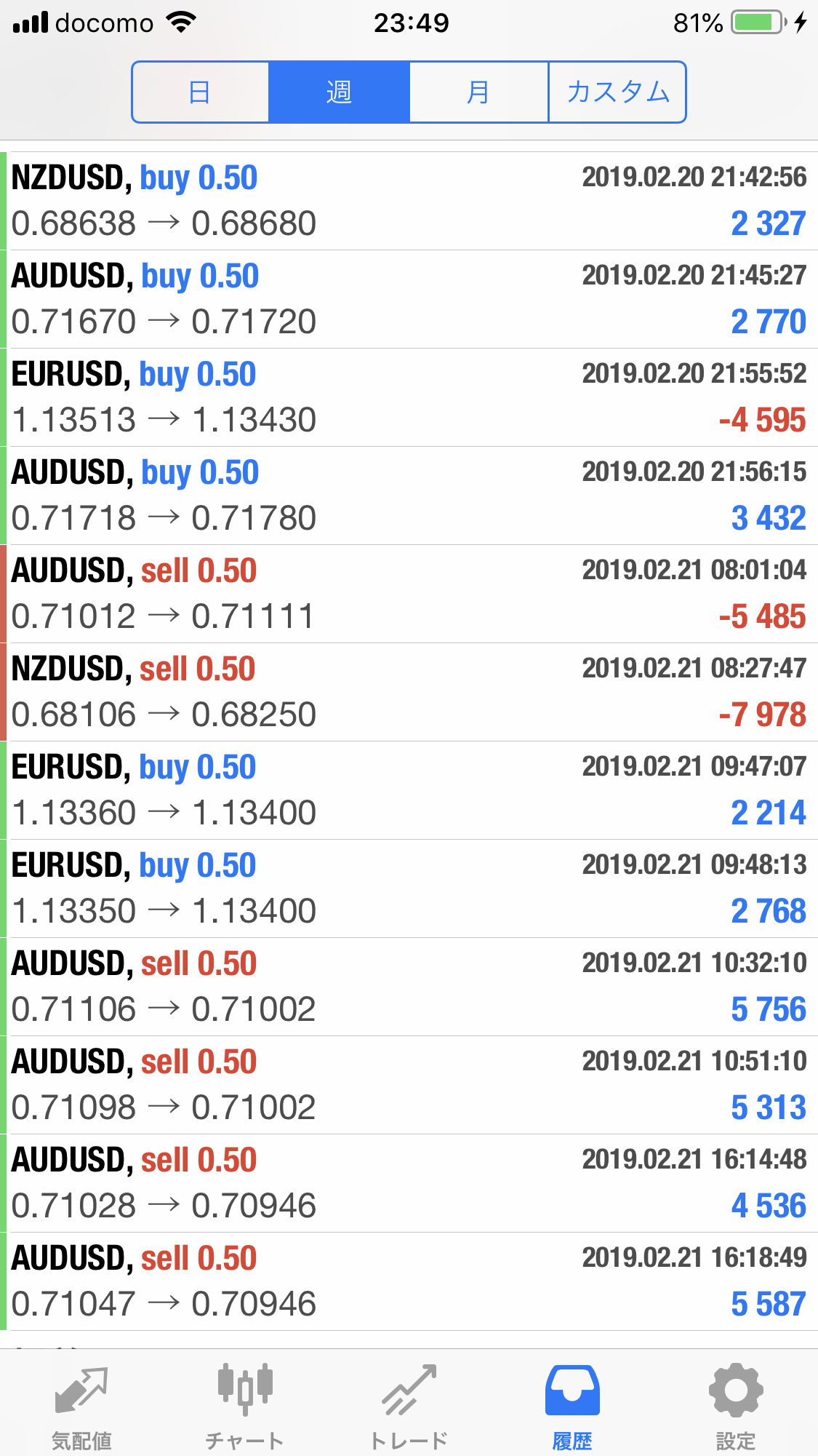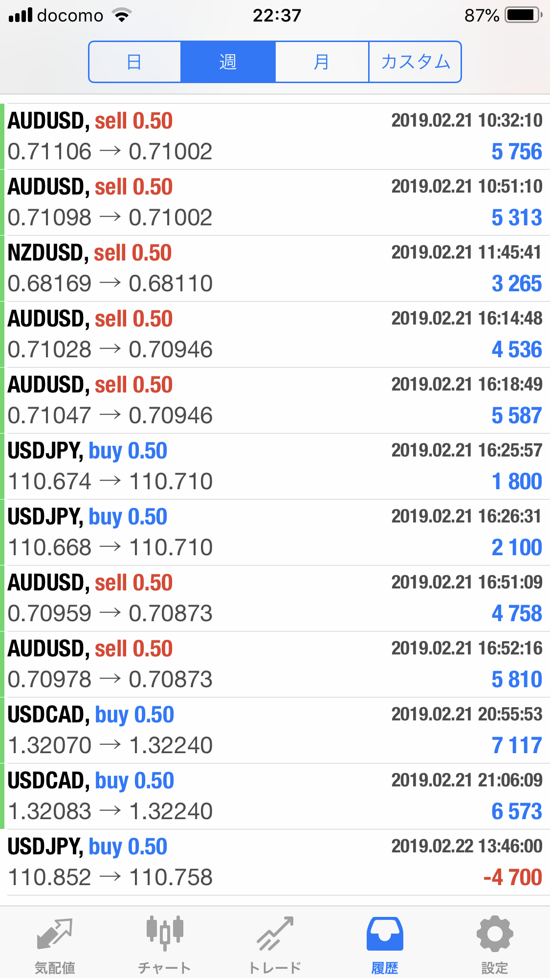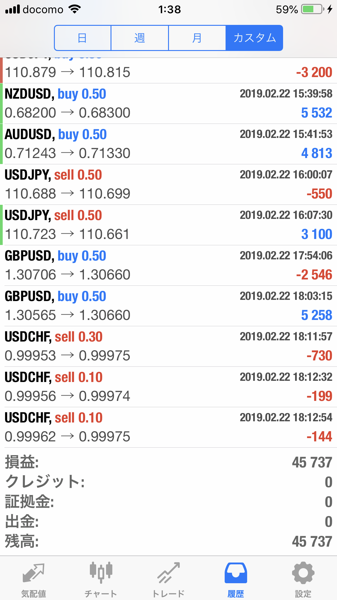トレード回数:多すぎてわかりません(;´・ω・) 獲得pips:多すぎてわかりません(;´・ω・) 損益合計:45737円