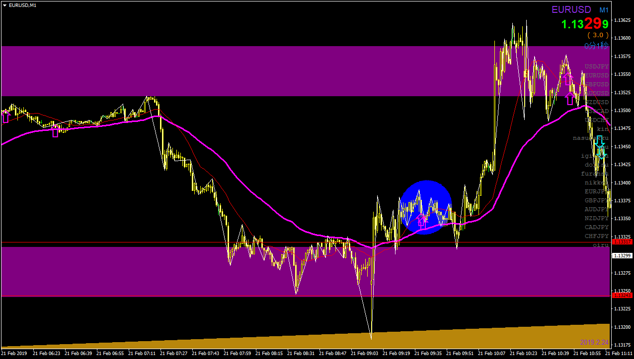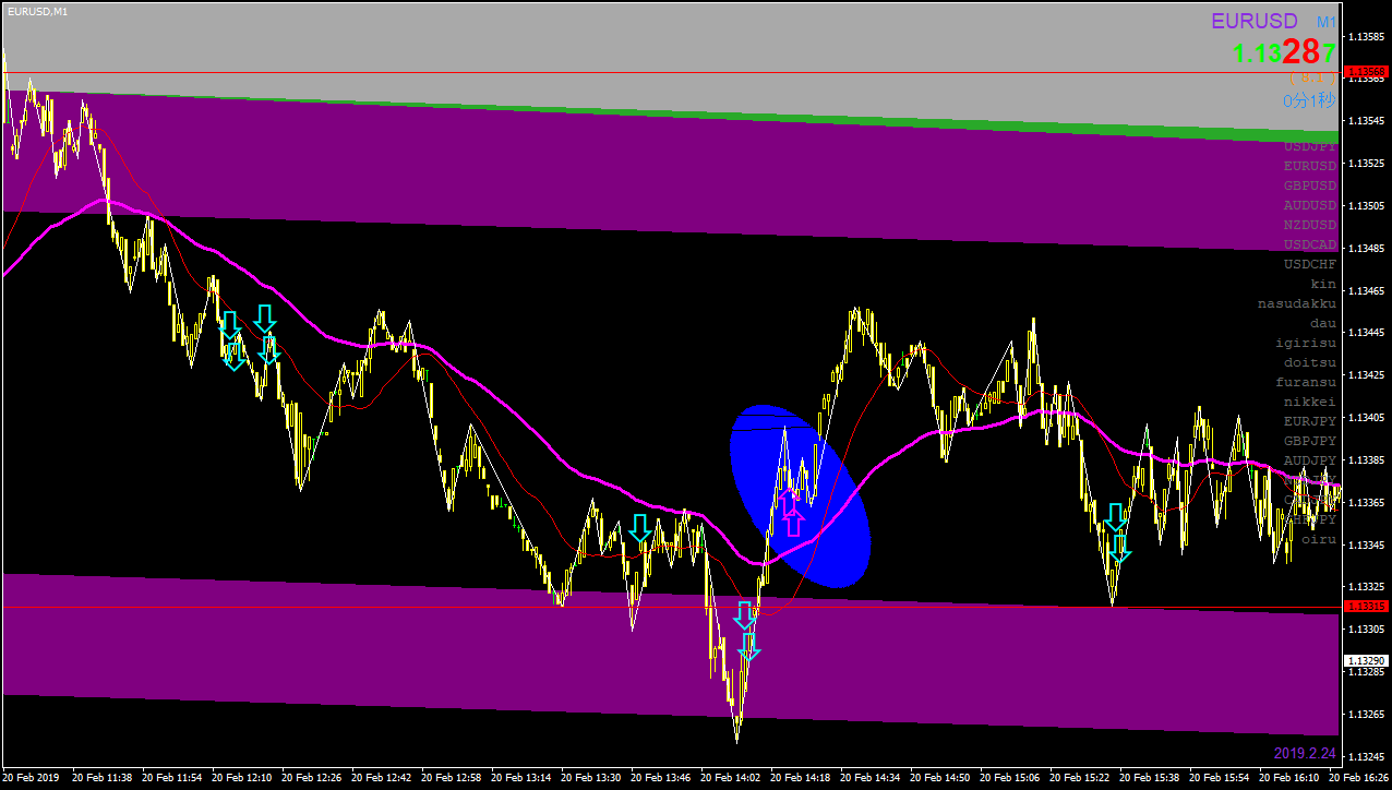 こちらもHTオートチャネル反発からの1分足スキャルです。