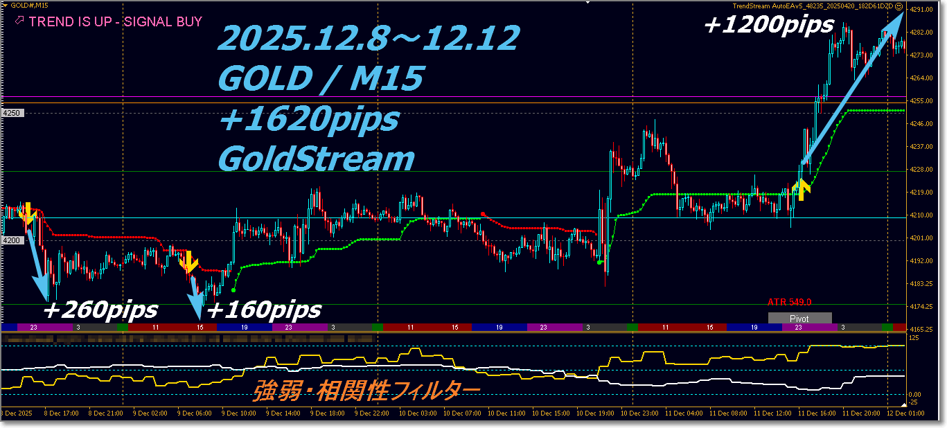 【先週の成績】GOLDデイトレ特化型 ”GoldStream” 2025.12.8~12.12