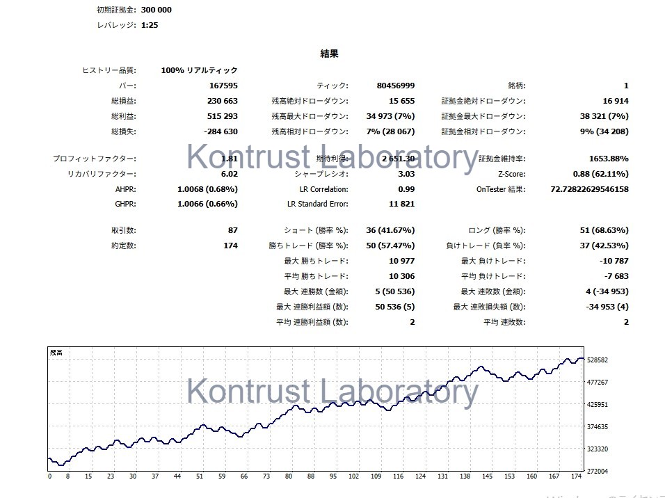 勝ちトレード (勝率 %): 50 (57.47%)