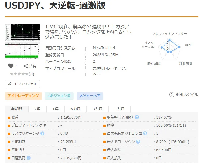 USDJPY、大逆転-過激版 - システムトレード - 世界のトレード手法・ツールが集まるマーケットプレイス - GogoJungle