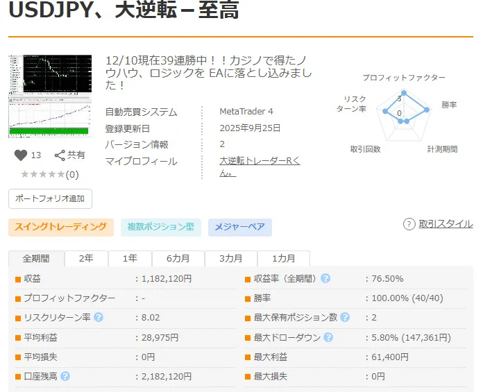 なんと!40連勝中全勝のEAあります!