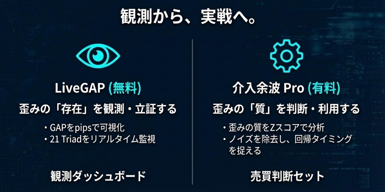 この 判断とタイミング を担うのが、これまで紹介してきた 介入余波Pro(Scanner / Catcher / Nowcast) です。